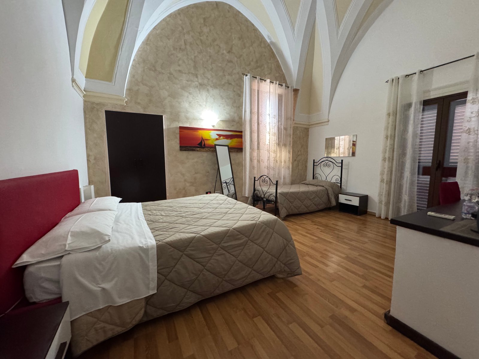 Stanza Lucia offre una vista privilegiata su Piazza Vittorio Emanuele II, il cuore pulsante di Mesagne. Spaziosa e inondata di luce naturale, vanta un grande balcone da cui ammirare la vita cittadina. Arredata con gusto e dotata di letti confortevoli, è l'ideale per un soggiorno rilassante e centrale.