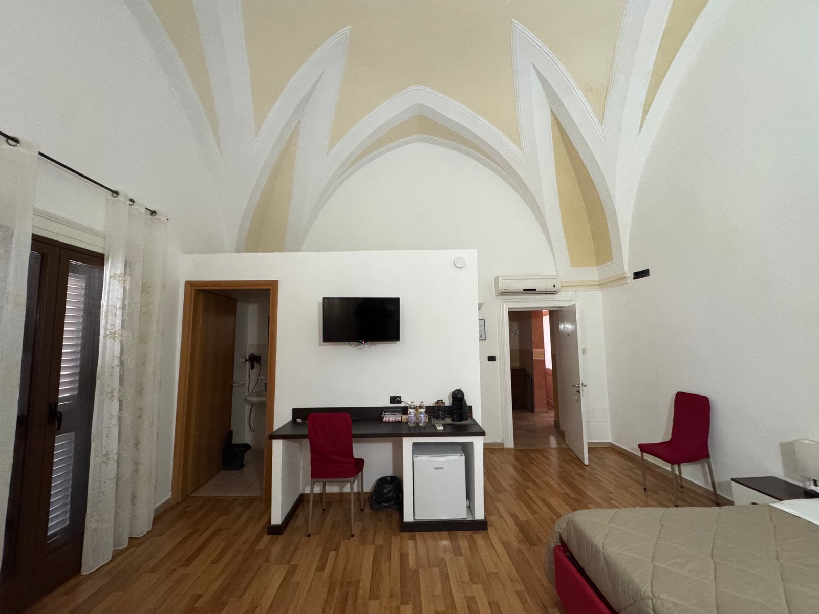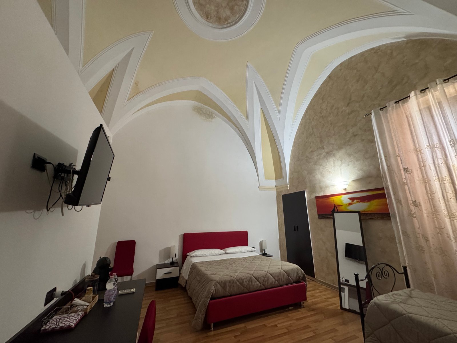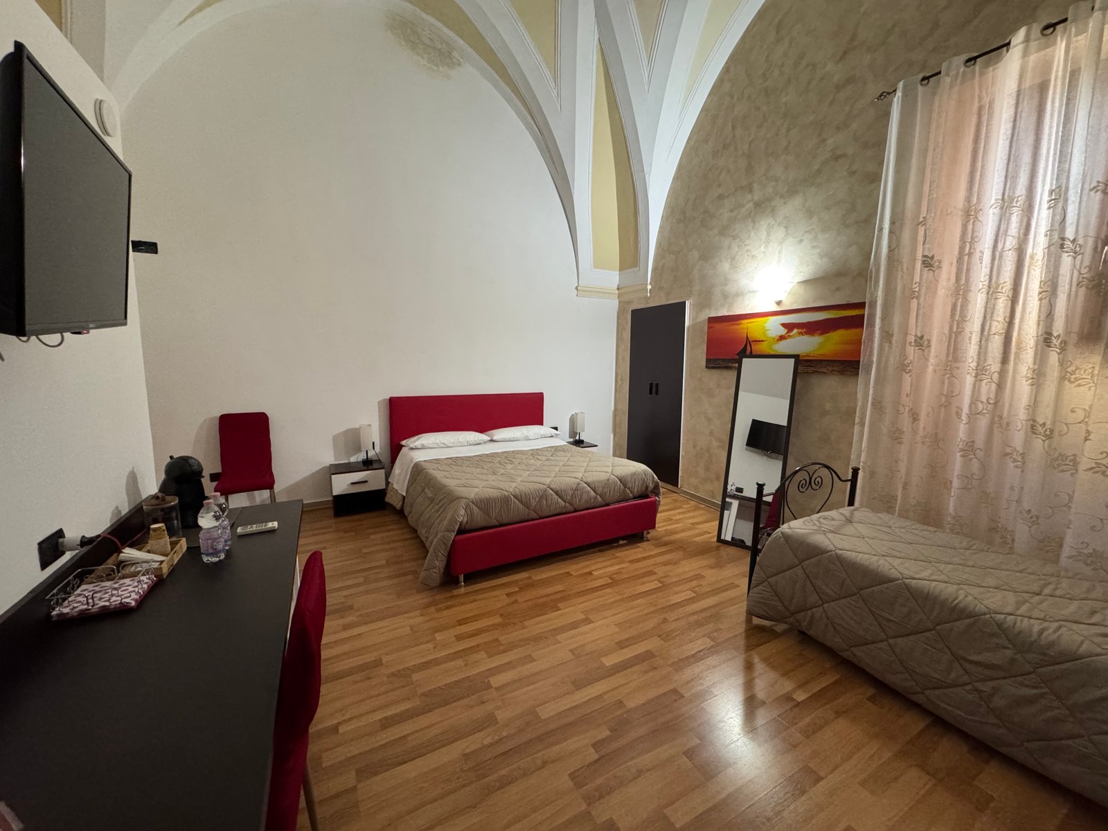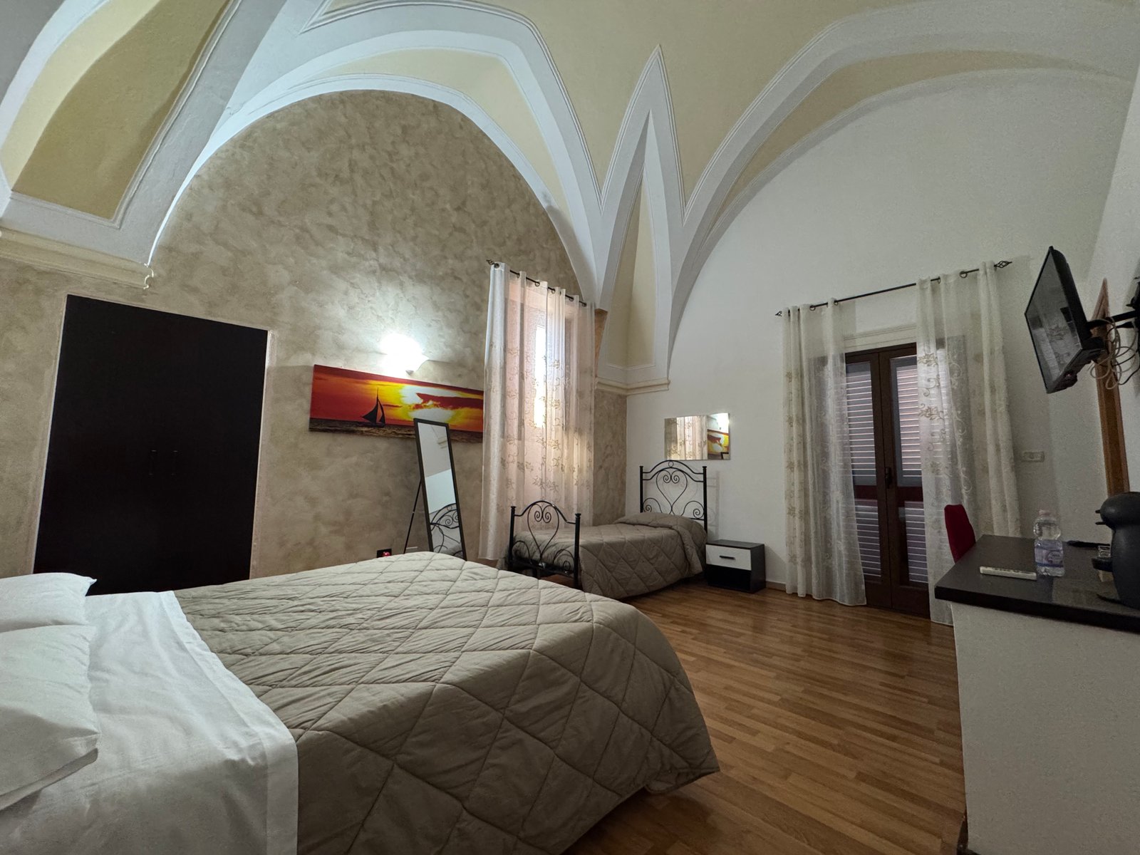 Stanza Lucia offre una vista privilegiata su Piazza Vittorio Emanuele II, il cuore pulsante di Mesagne. Spaziosa e inondata di luce naturale, vanta un grande balcone da cui ammirare la vita cittadina. Arredata con gusto e dotata di letti confortevoli, è l'ideale per un soggiorno rilassante e centrale.